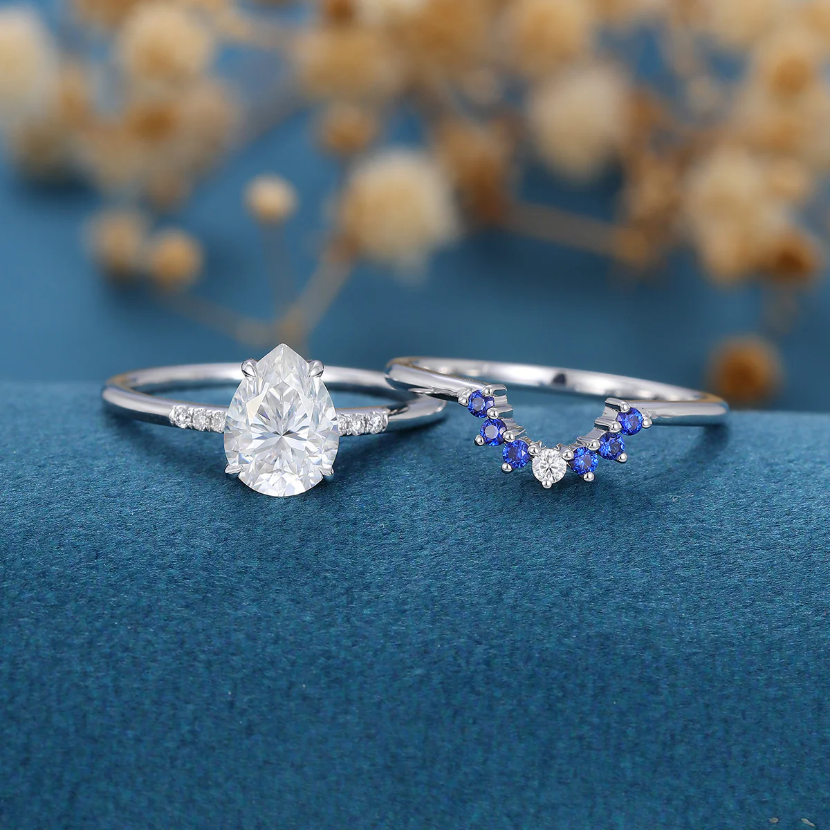 1.2 Carat Vintage Pear cut Moissanite Cluster Engagement Bridal Set