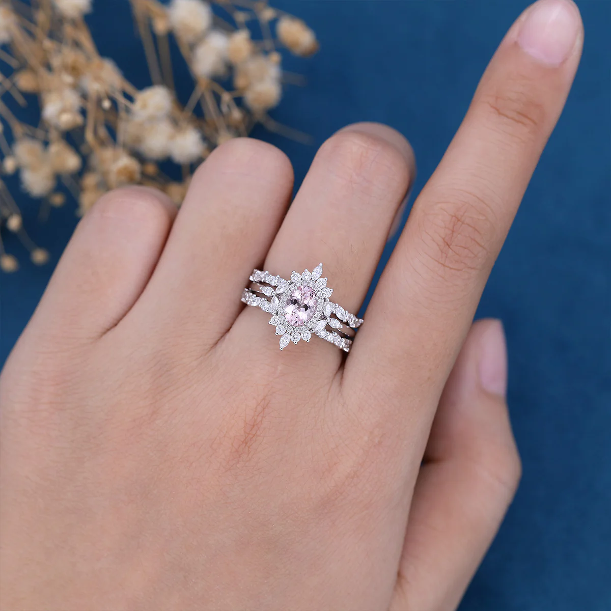 1.0Carat Oval cut Morganite Engagement ring Bridal Set