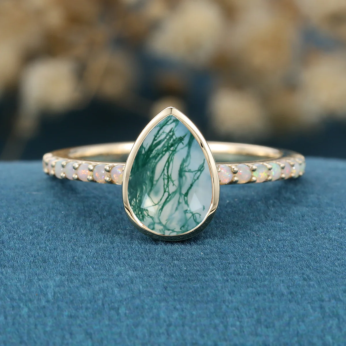 Type: Moss Agate 1.5 Carat Size: 7 x 10 mm Shape: Pear cut Total weight: 3.55g (Depending on the ring size) |