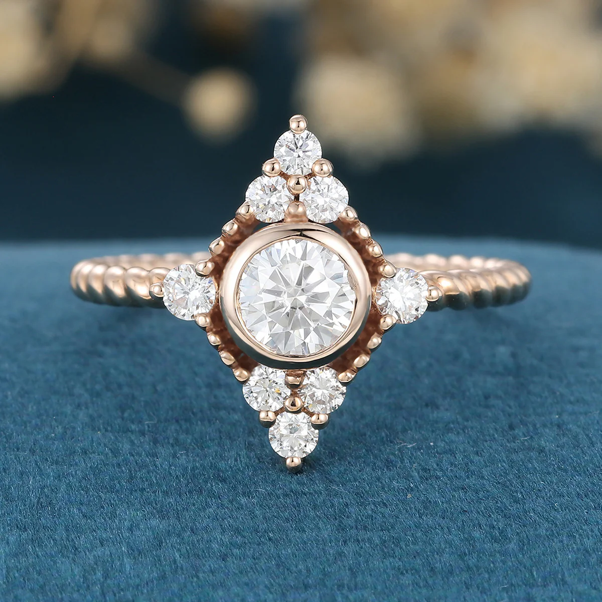 Bezel SetSet Round cut Moissanite Halo Gold Engagement Ring