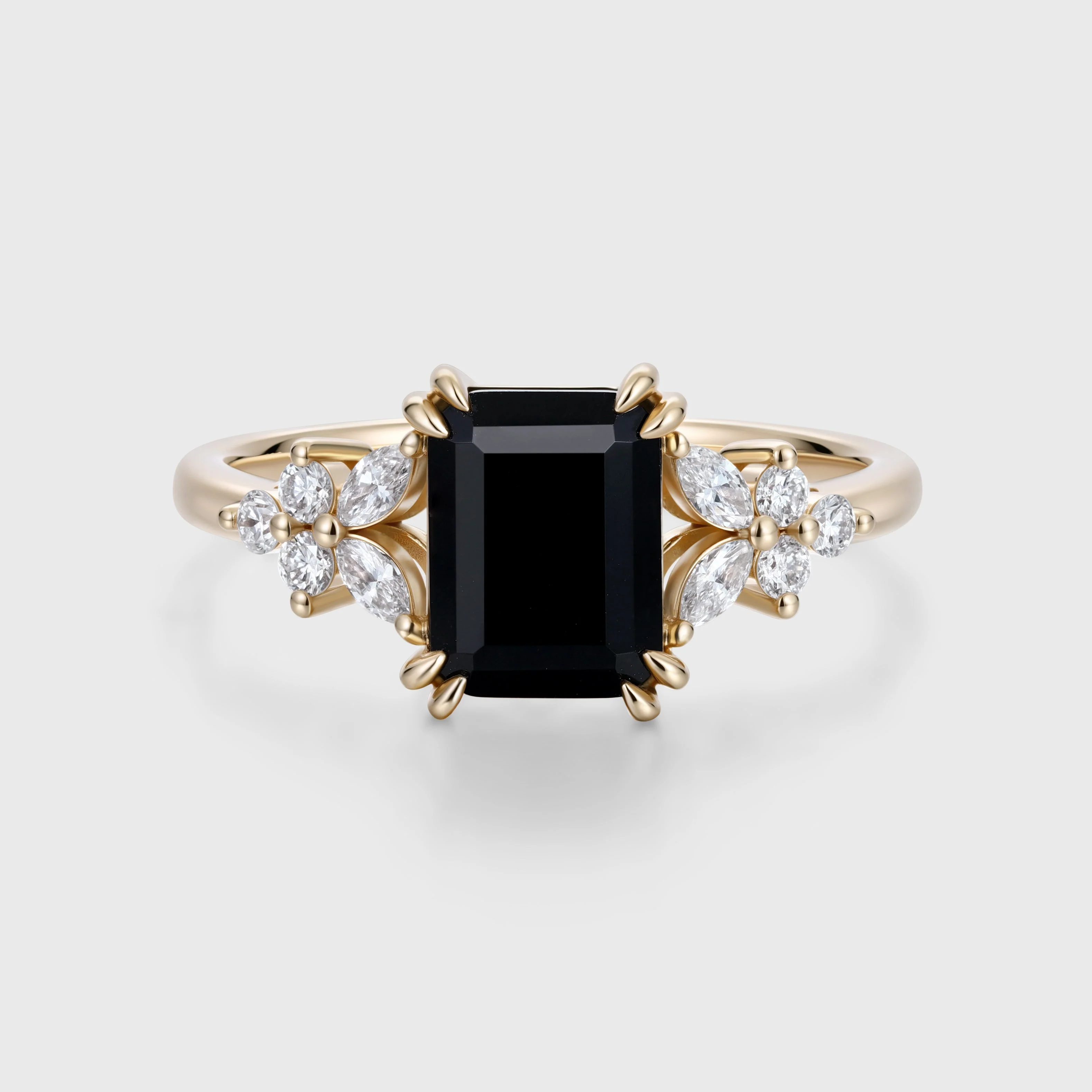 1.7Carat Emerald cut Black Onyx Cluster Engagement Ring