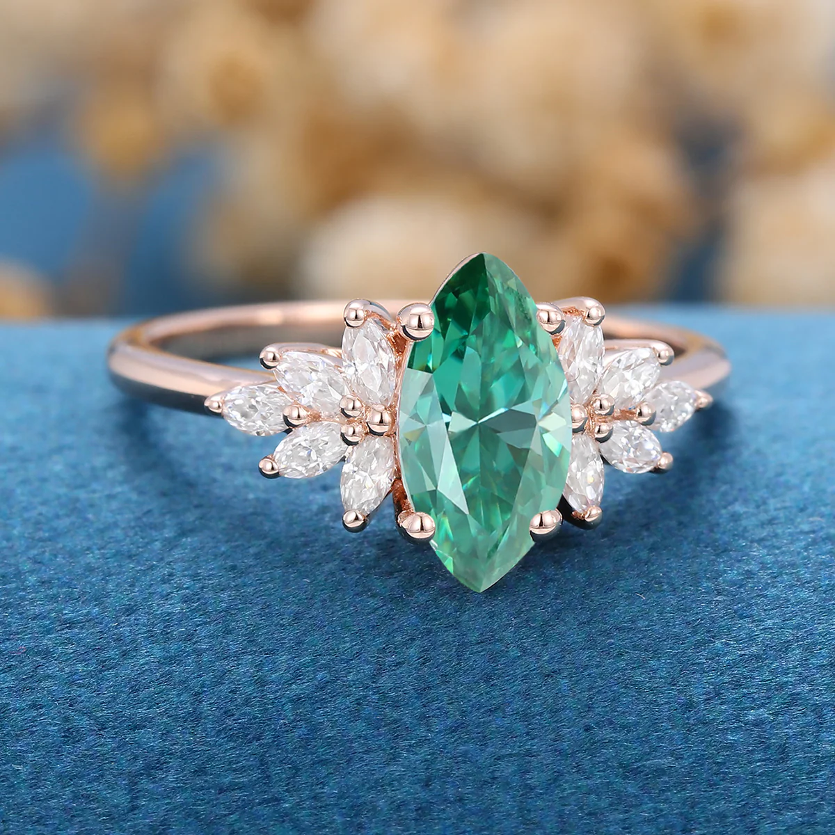 1 Carat Vintage Marquise cut Green Moissanite Cluster Engagement Ring for Women