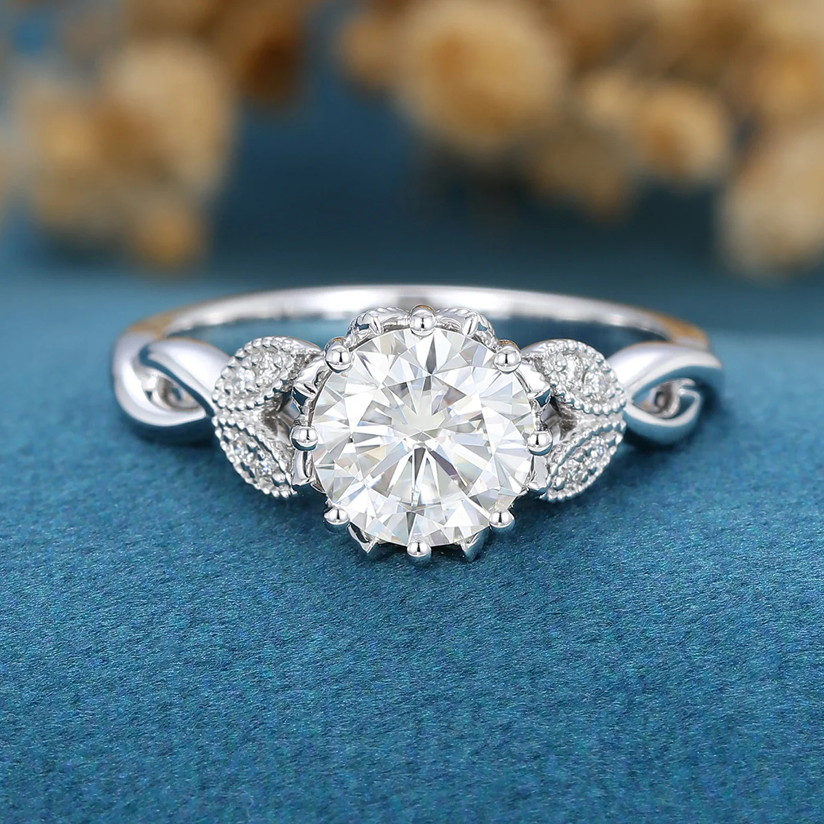 1.2Carat Round cut Moissanite Flower Engagement Ring