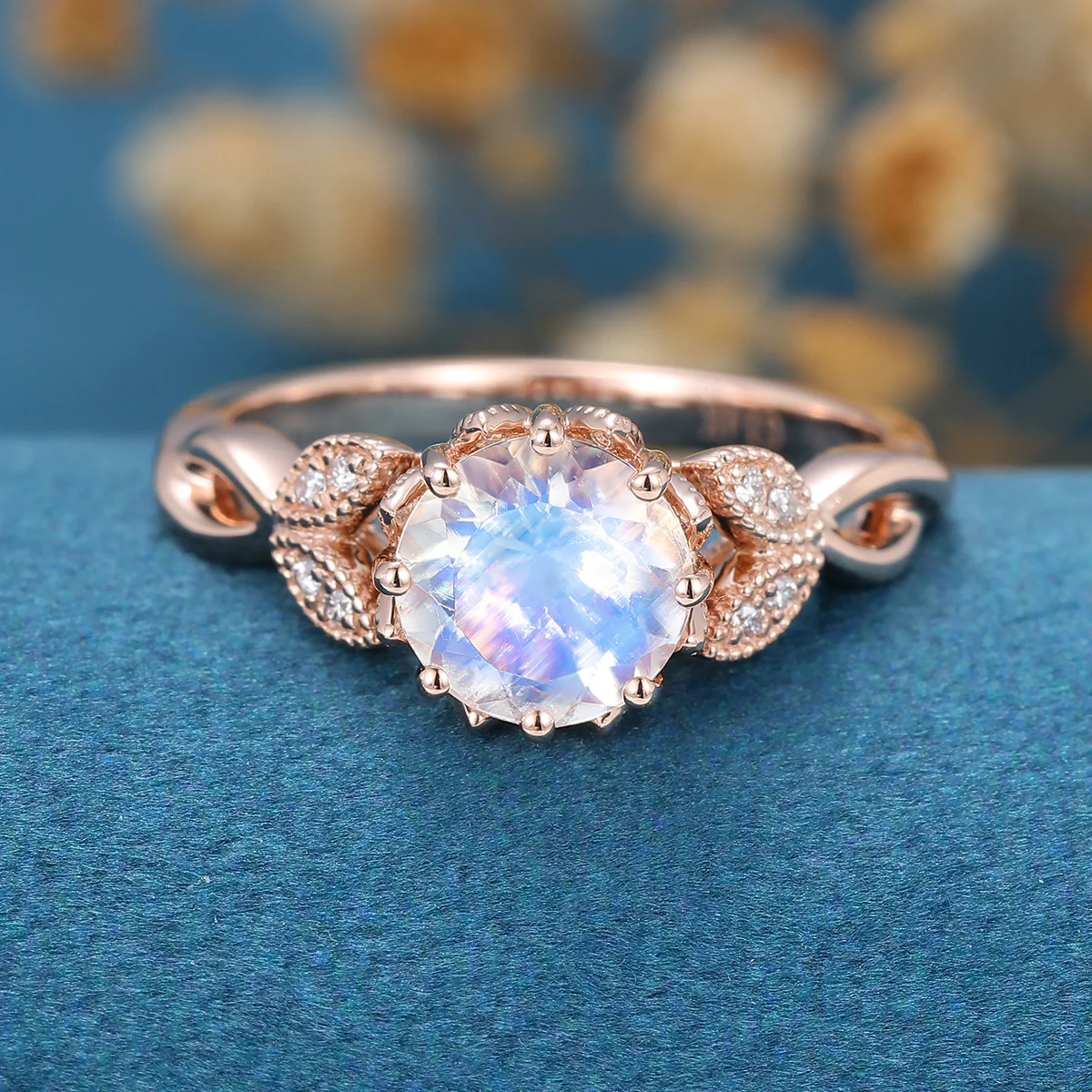 1.5 Carat Round cut Moonstone Flower Engagement Ring