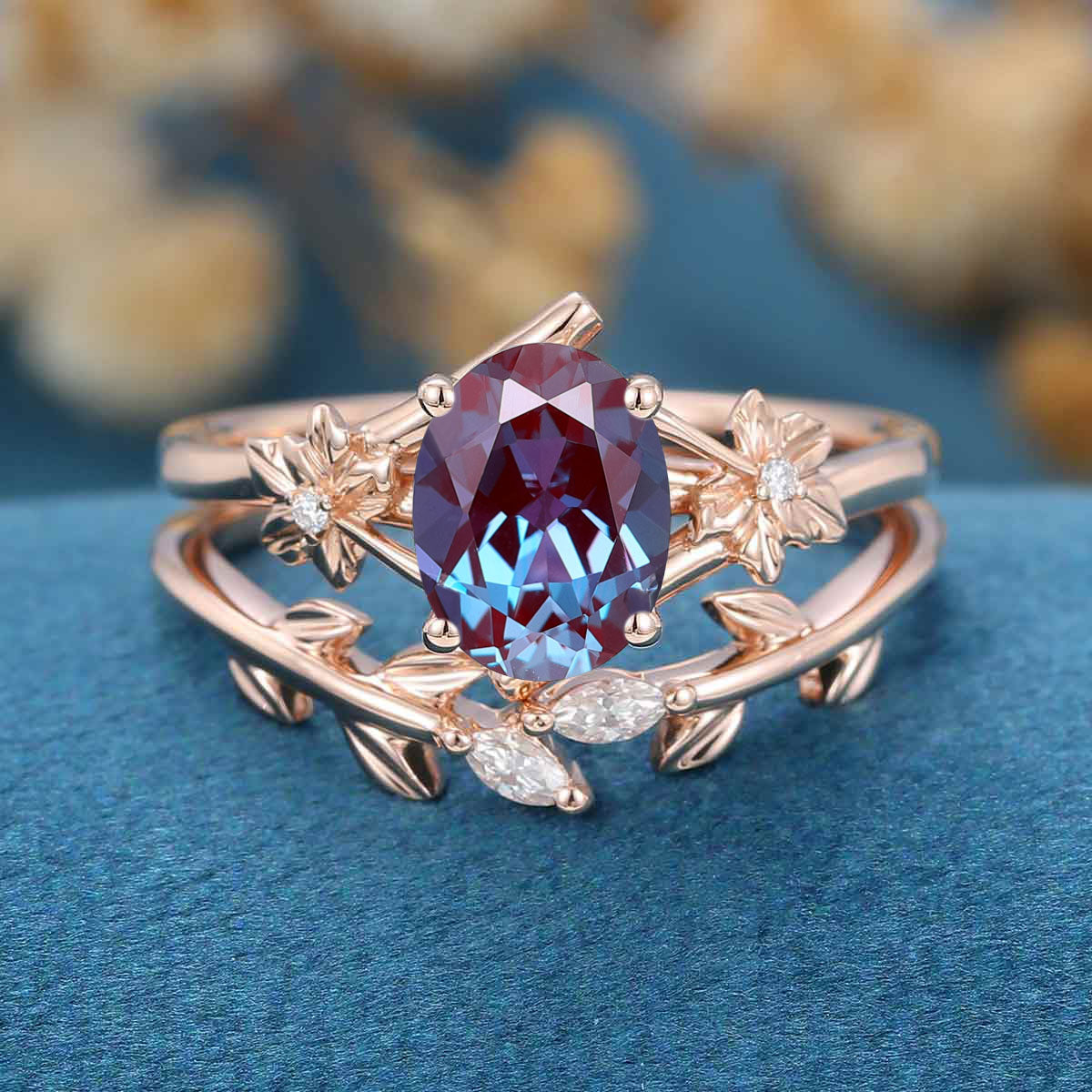 Oval cut Lab Alexandrite | Diamond Engagement Ring Bridal Set
