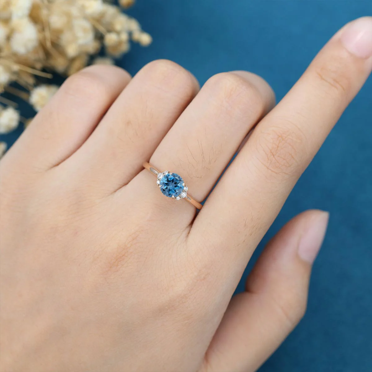 1.0Carat Round cut London Blue Topaz Engagement ring